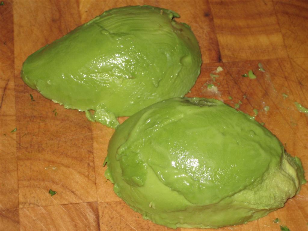 - Vágd föl az avokádókat, és szedd ki a húsukat. Ha ez nehézséget okoz, kattints ide, ahol fényképekkel megmutatom, hogyan lehet ezt egyszerűen. (Ha gondolod tedd félre a kikapart héját, ebbe tudod visszatölteni majd a kész krémet.)