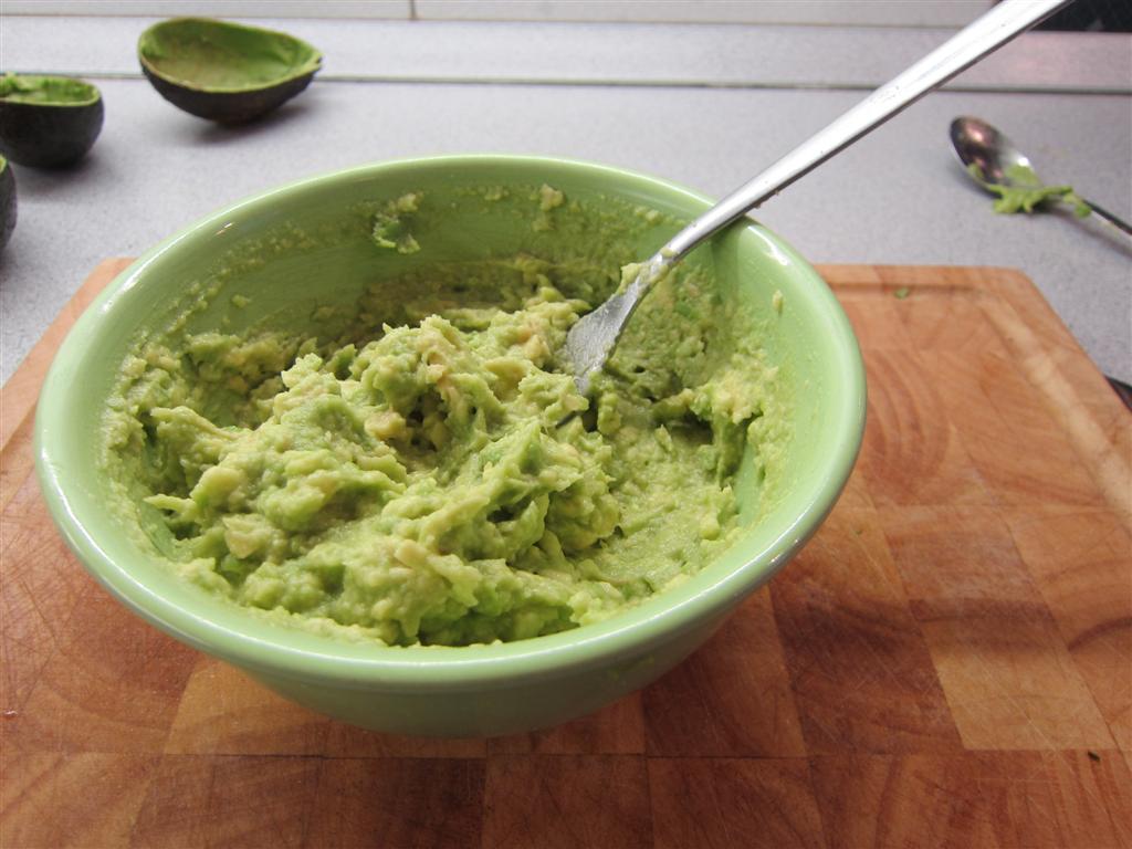 - Az avokádó húsát törd össze villával egy tálban. Az ízlésedtől függ, hogy mekkora darabok maradnak benne. Én szeretem, ha egy kicsit rusztikusabb, és néhány nagyobb darab is belekerül. (Az eredeti, azték változatban egészen pürésre keverték. Mexikóban sok helyen ma is ezt teszik, sőt vízzel vagy tejjel dúsítják, hogy még krémesebb állagú legyen.)